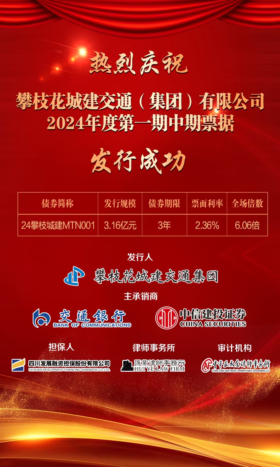 喜報— —攀枝花城建交通集團成功簿記發(fā)行 2024年度第一期中期票據(jù)