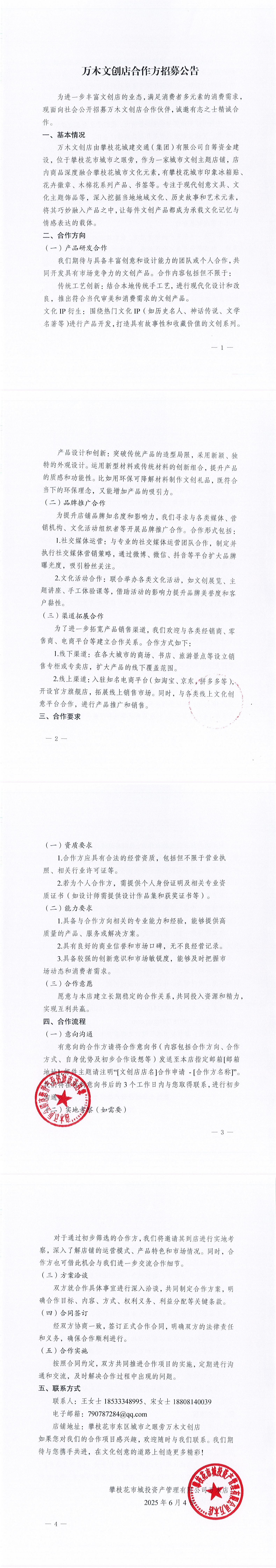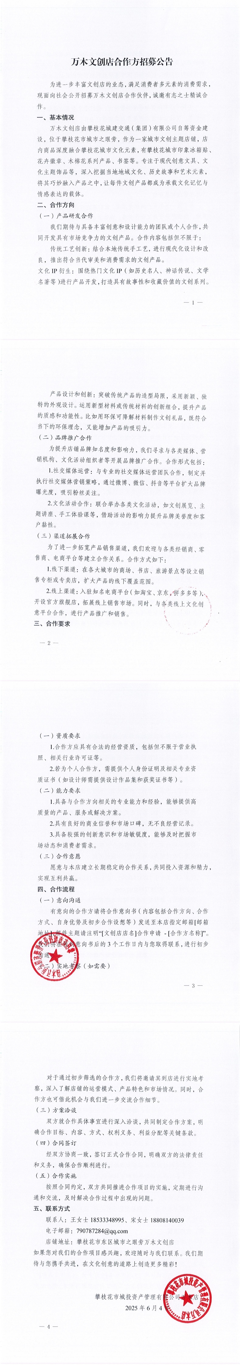 攀枝花市城投資產(chǎn)管理有限公司萬(wàn)木店合作方招募公告